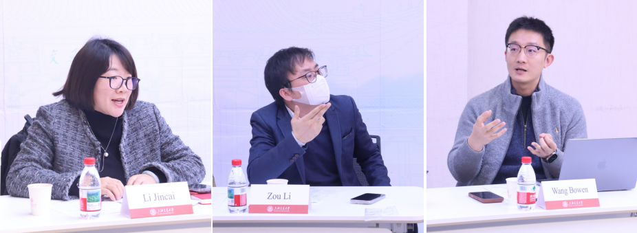 李金彩向外方全面介绍了近年来学院在学科特色凝练与建设方面取得的进展。邹理、吕倩兮、王博文分别就外方关心的学术研究、教学模式、课程管理等内容进行了说明。